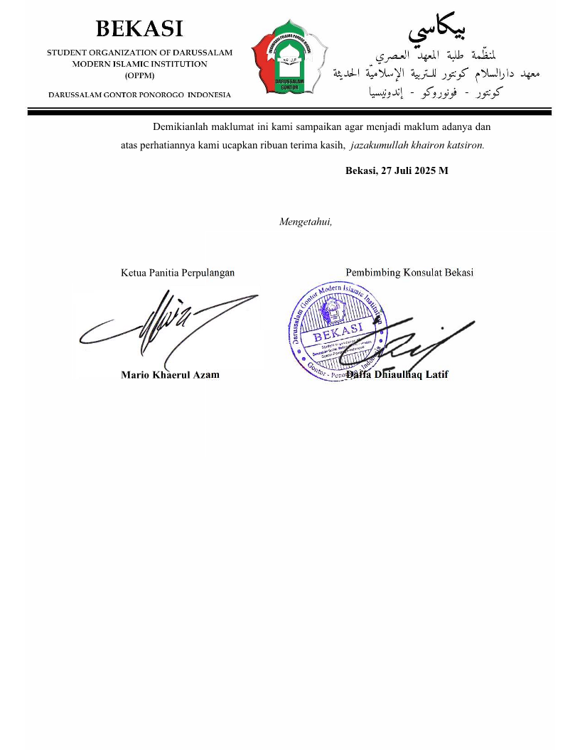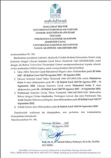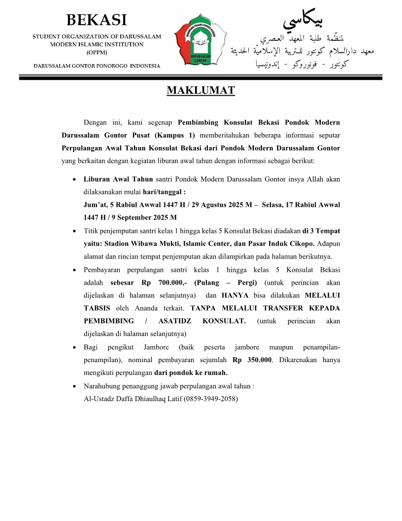 Berikut kami sampaikan Informasi terkait Pengumuman liburan Pertengahan Tahun untuk Santriwan, Santriwati, Mahasiswa dan Mahasiswi :
